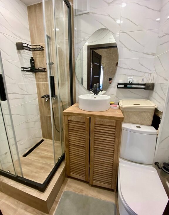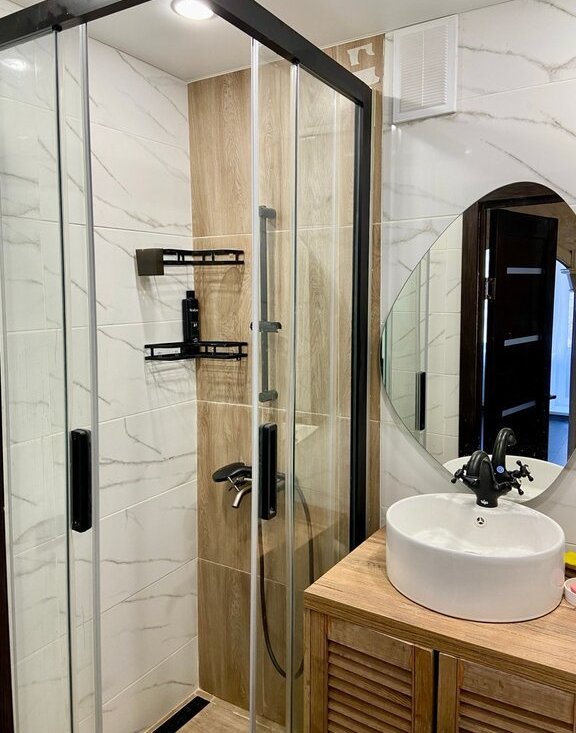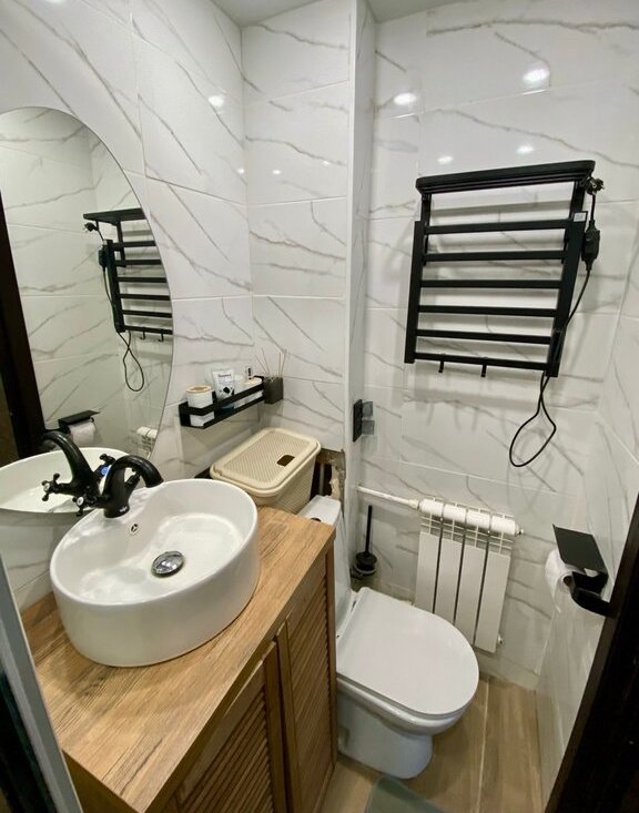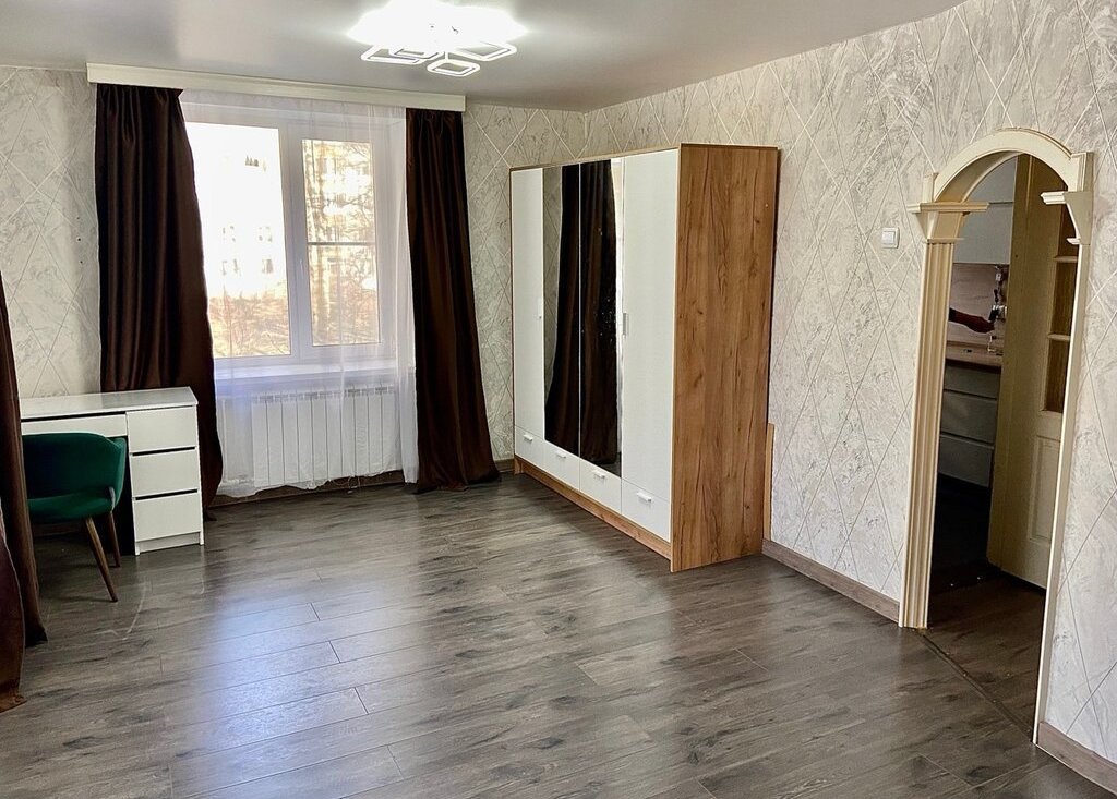 В квартире выполнен косметический ремонт и установлены самые необходимые для комфортного проживания элементы мебели и техники: обустроенные спальные и рабочие места, холодильник, стиральная машина, проточный газовый водонагреватель обеспечит горячей водой даже в сезон отключения ГВС.