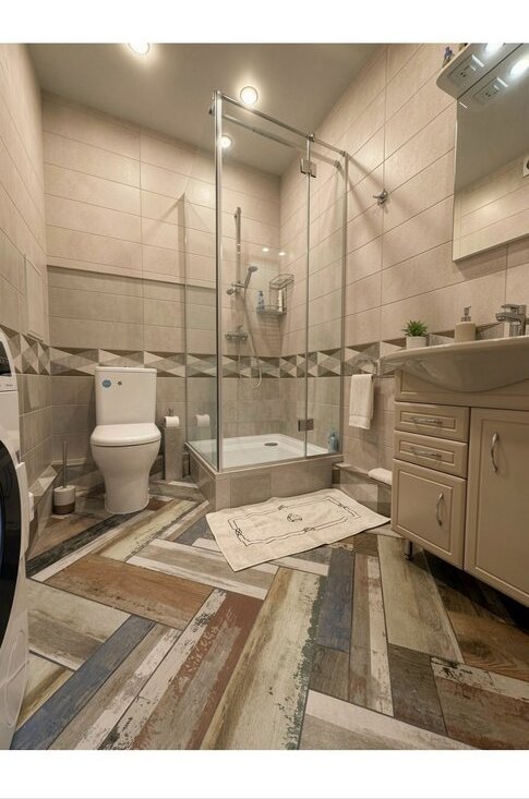 Стиральная машина в совмещенном санузле.