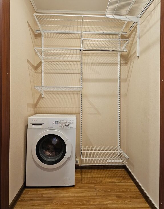 3) в ванной комнате установлен полноценный шкаф, сделали максимум света