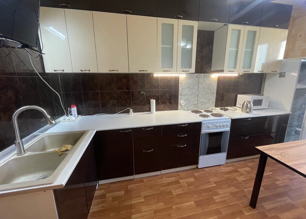 В квартире большой шкаф, кладовка с полками и большая кухня, новая кровать и новый матрас, 2 телевизора на кухне и в комнате, микроволновка, стиральная машина, утепленный балкон
