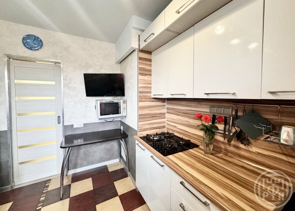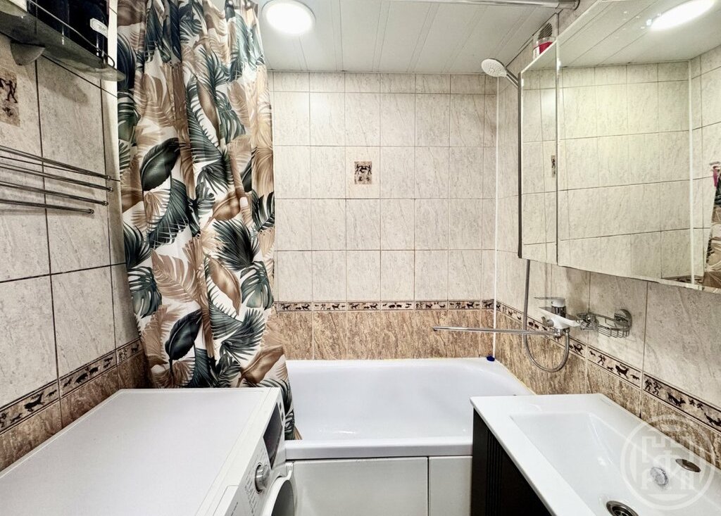 Кухня просторная, оборудована всем необходимым. Санузел раздельный, в ванной комнате установлен стиральная машина.