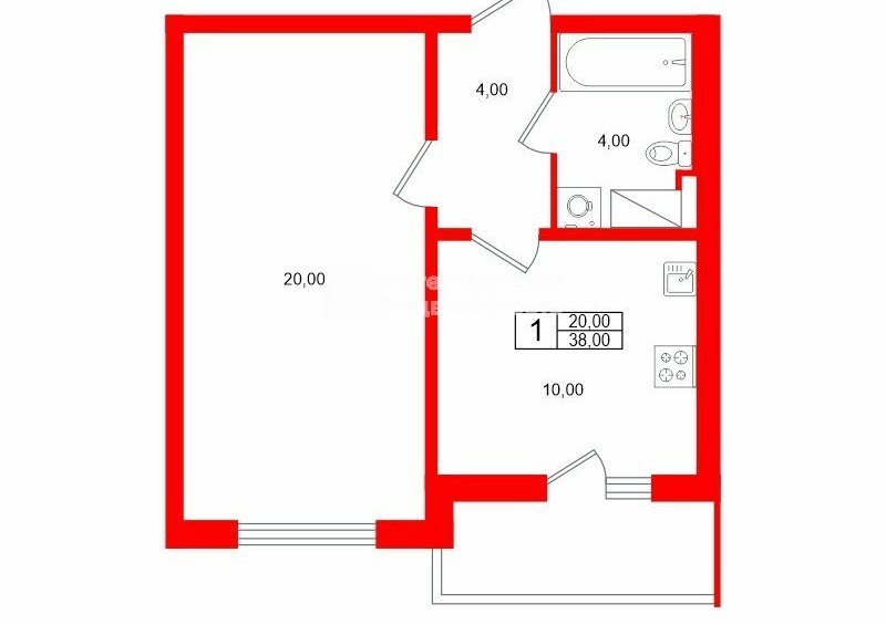 1-комнатная квартира: Санкт-Петербург, улица Маршала Говорова, 26к2 (32 м²)