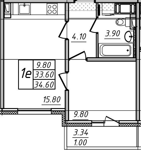 1-комнатная квартира: Санкт-Петербург, улица Дыбенко, 7к1 (34.6 м²)