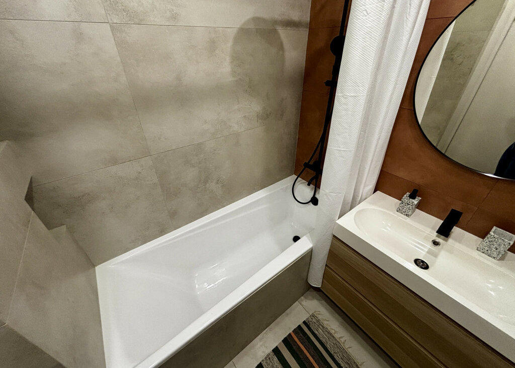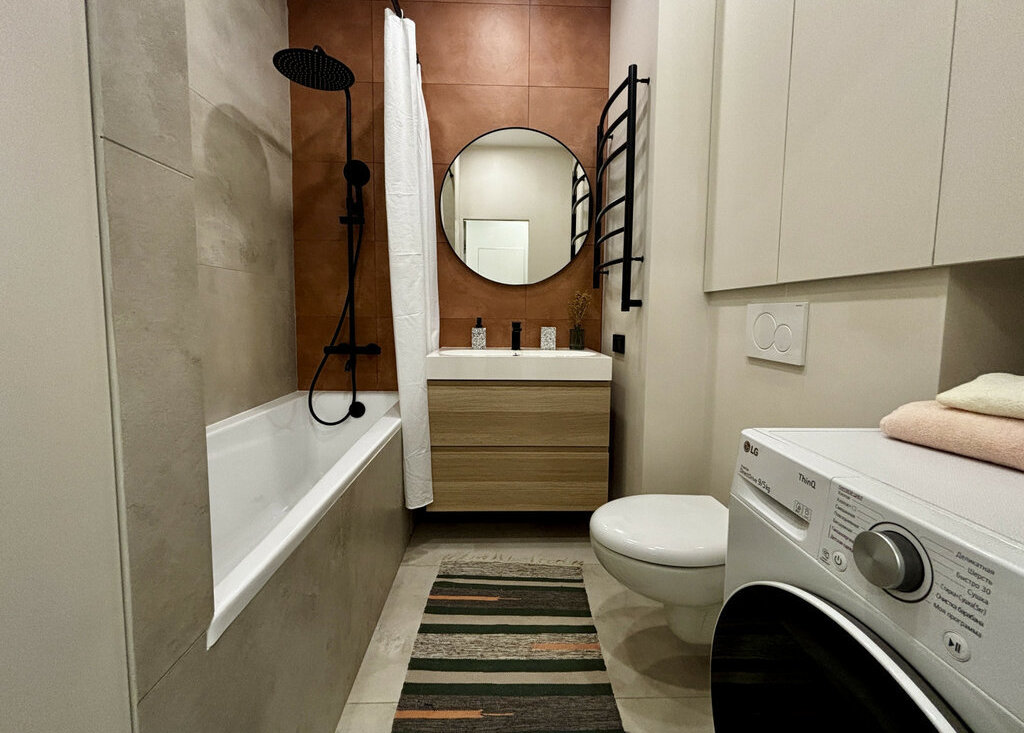 Дизайнерский ремонт: Современный стиль, который не надоедает. Особый уют добавляют тёплые полы в ванной — теперь утро начинается с комфорта.
