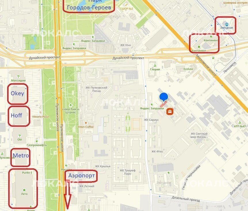 -- Торговые центры в шаговой доступности: Континент, Лето, Metro, Hoff, Ашан, О'Кей;