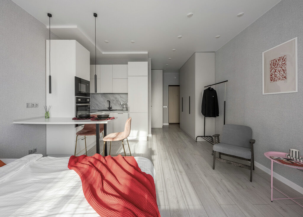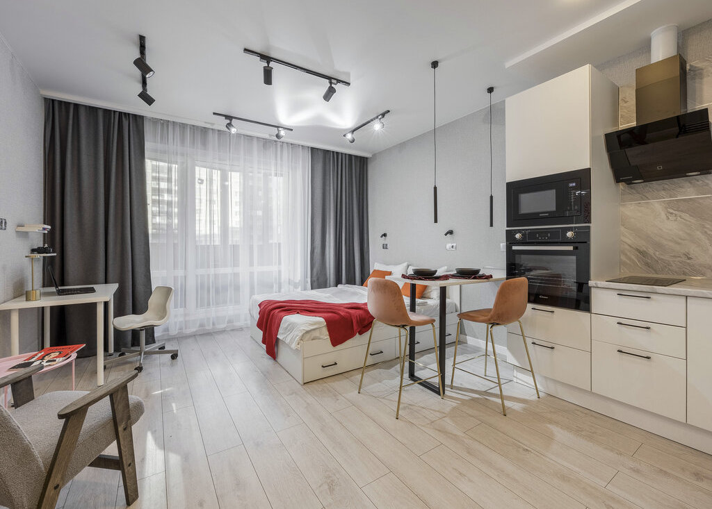 В квартире имеется крытый балкон с ремонтом, в большой комнате: блекаут шторы с подсветкой, двуспальная кровать 160х200 с ящиками для хранения, у каждого спального места бра, рабочий стол со стулом и полочками, кресло для отдыха с кофейным столиком, рейл для одежды, большой шкаф для одежды и вещей. В кухонной зоне располагается барная стойка со стульями, кухонный гарнитур с духовым шкафом, встроенной микроволновкой, вытяжкой, чайником, посудомоечной машиной, краном с питьевой водой, инд. варочной панелью, встроенным холодильником и подсветкой рабочей зоны. В прихожей большой шкаф для верхней одежды. В совмещенном сан. узле расположен эл.полотенцесушитель, инсталляция, душевая, стиральная машина с встроенной сушкой, подвесная раковина с зеркалом с подсветкой, шкаф для хранения. Установлены магистральные фильтры. Имеются различные сценарии освещения (бра отдельно, свет над столом отдельно и т.д.). Курение в квартире запрещено, в том числе испарителей и систем нагревания табака. Проживание строго по договору, с обязательным соблюдением чистоты и аккуратности при проживании, так как ремонт делался не под сдачу. Со своей стороны как наймодателя также гарантирую соблюдение договора, помощь по всем вопросам и адекватную коммуникацию.