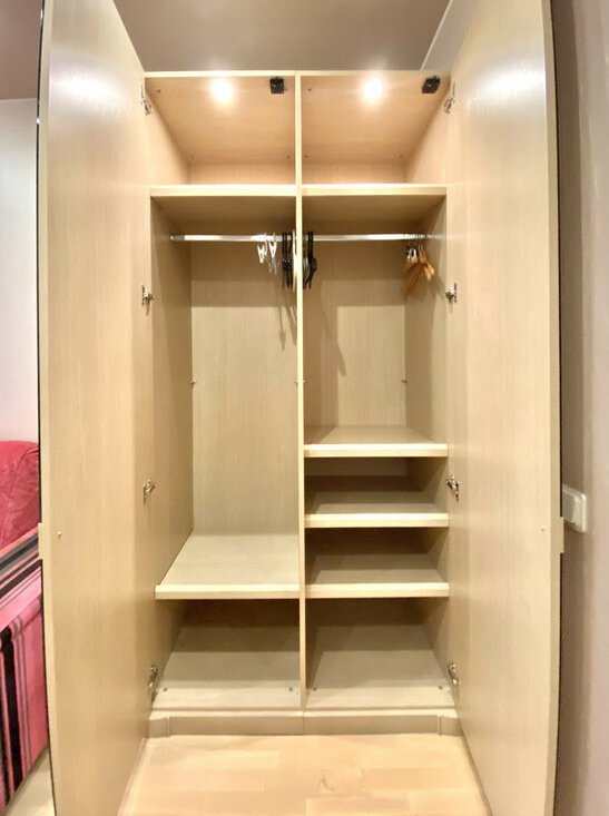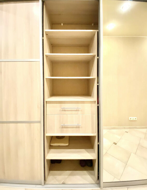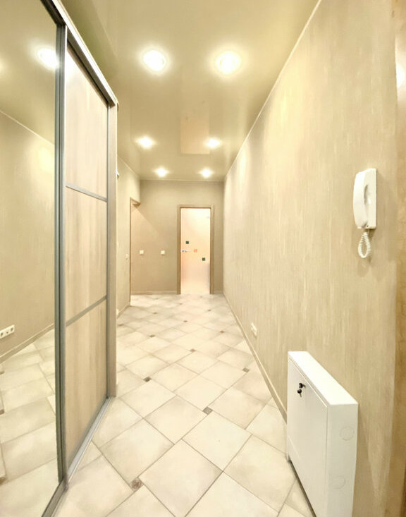 В холле большая зона для хранения, шкафы купе с зеркальными дверьми.