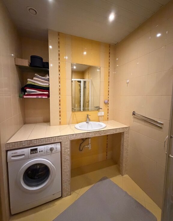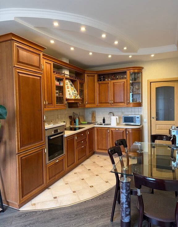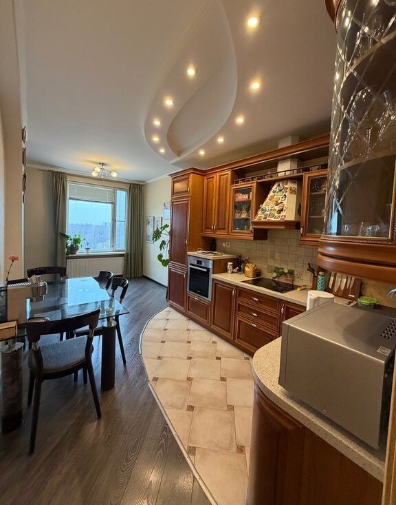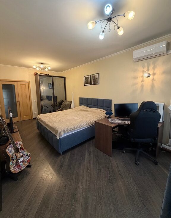 Квартира полностью готова к проживанию. Новым владельцам остается вся мебель: итальянская кухня из натурального дерева, кухонный гарнитур, рабочее место, системы хранения, новая кровать, техника Bosch и др.