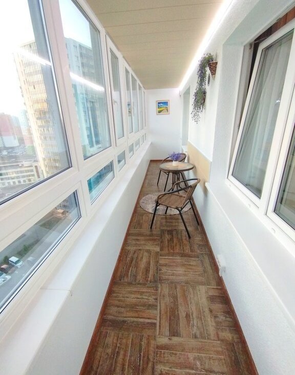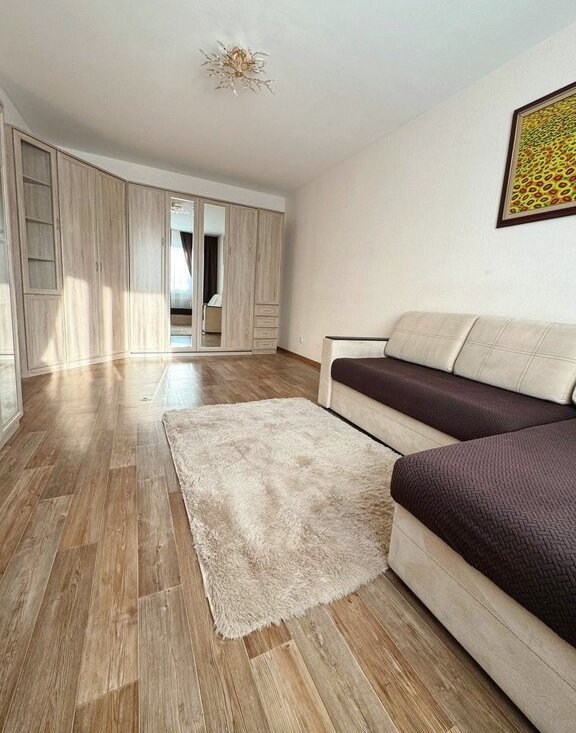 Новый дом. Отличное состояние, большая застекленная утепленная лоджия с мебелью и подогревом пола, высокий этаж, вид на город.