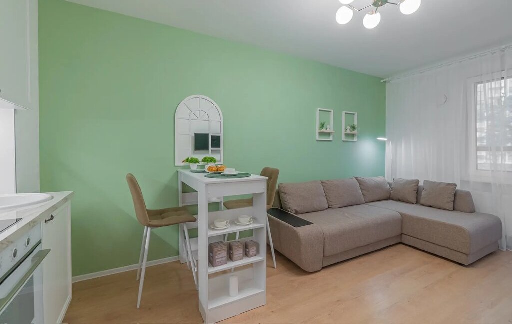Почувствуйте себя дома в красивой квартире с просторной кухней-гостиной и отдельной спальней.