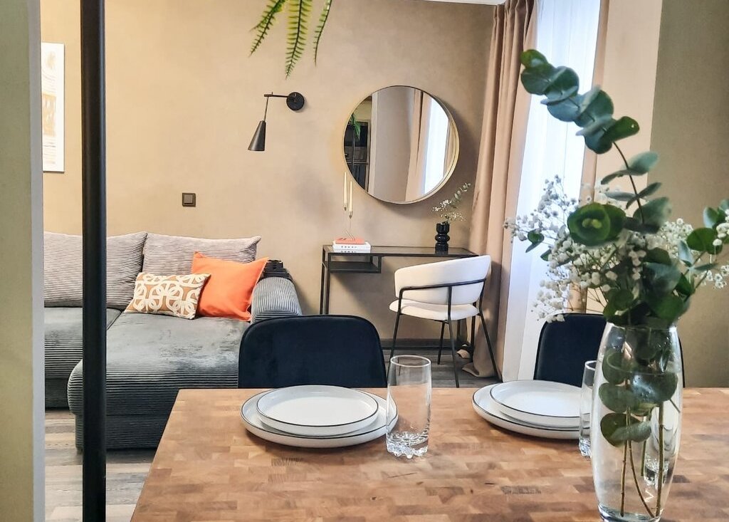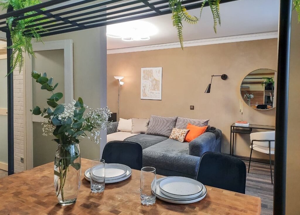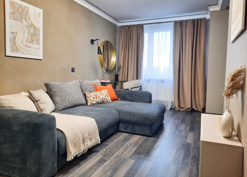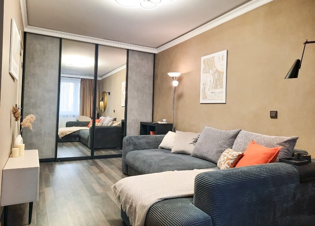 · Гостиная: Просторная комната, где каждая деталь работает на комфорт. Вас ждет вместительный встроенный шкаф для хранения вещей и стильный раскладной диван — идеальное решение для уютных вечеров в кругу семьи или шумных встреч с друзьями.