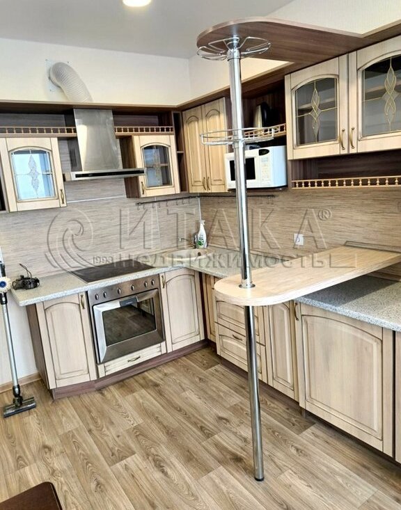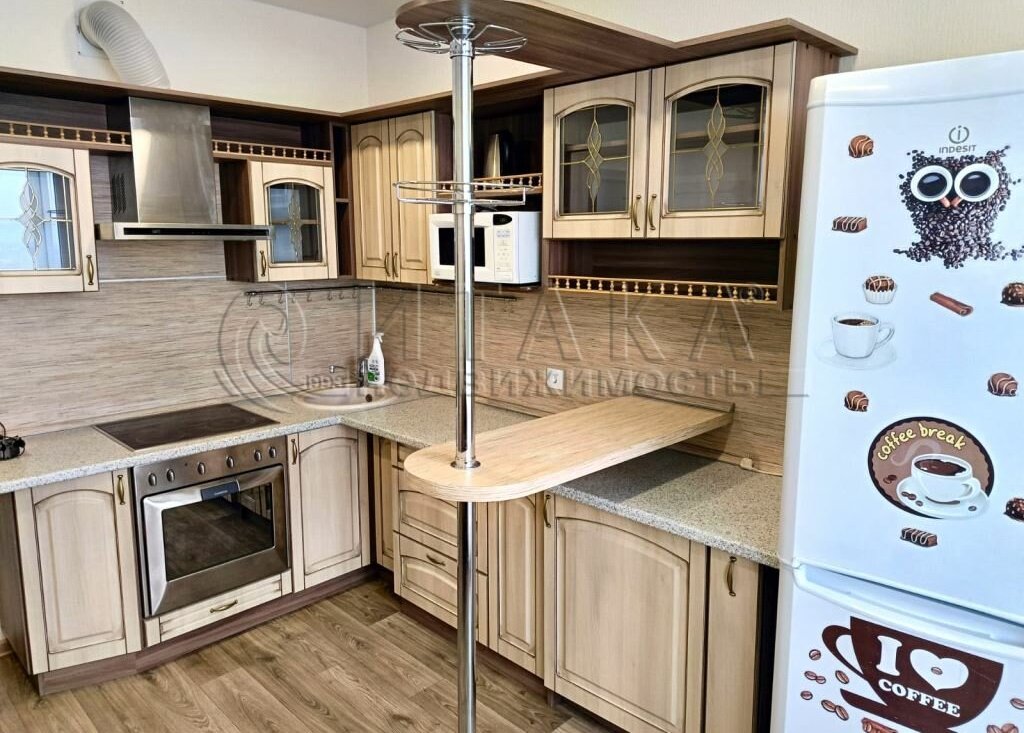 Квартира находится на 13 этаже и располагает просторной кухней, где есть вся необходимая мебель и техника для комфортного проживания.