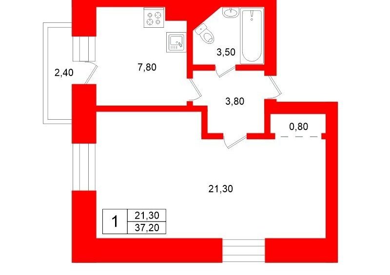 1-комнатная квартира: Санкт-Петербург, проспект Энергетиков, 9к3 (39.8 м²)