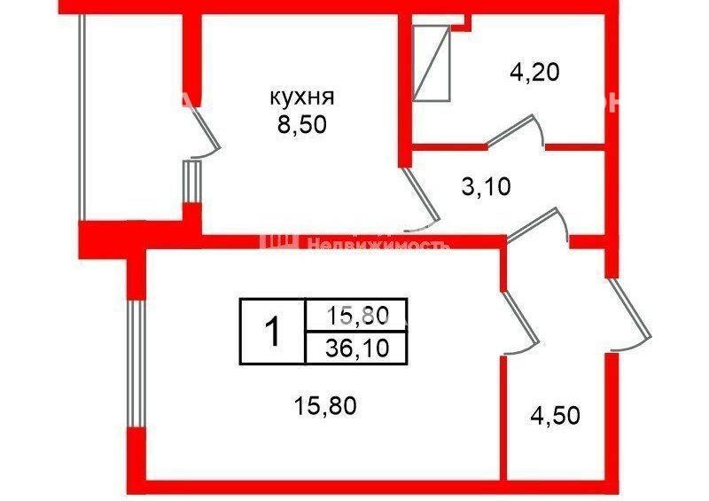 1-комнатная квартира: Санкт-Петербург, улица Лидии Зверевой, 5к1 (36.1 м²)