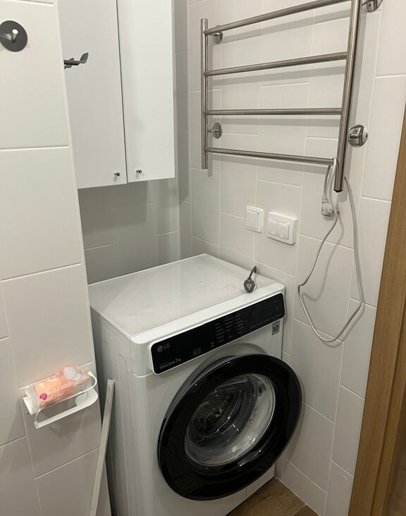 Есть все необходимое для проживания: диван, холодильник, плита, духовка, микроволновая печь, стиральная машина, кондиционер.