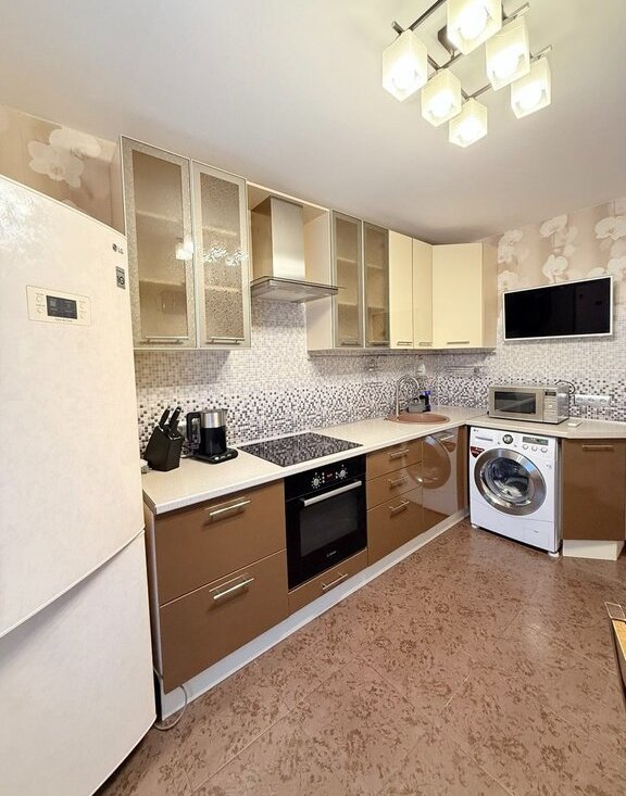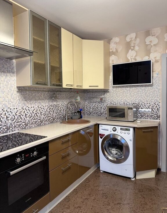 Квартира полностью оснащена всей необходимой для комфортного проживания мебелью и техникой, много мест для хранения. Очень удачная планировка с большой кухней, застекленный балкон -6 кв.м, санузел -раздельный, с ванной.