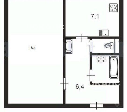 1-комнатная квартира: Санкт-Петербург, улица Олеко Дундича, 19к5 (35.3 м²)