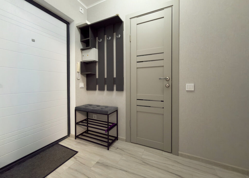 В прихожей вешалка для одежды.