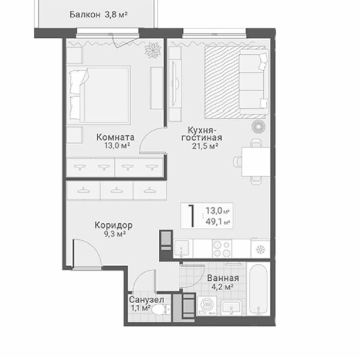 Квартира на 8 этаже, отличная европланировка. Большая кухня гостинная, спальня и просторный коридор. Установлен кухонный гарнитур, стиральная машина.Остальное наполнение обсуждаемо.