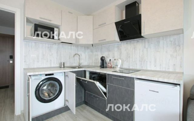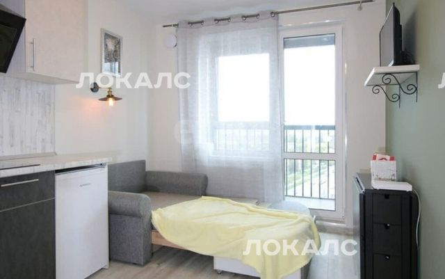 Это европланировка однокомнатной квартиры (евро-однушка): спальня и гостиная — одно открытое пространство 30 квадратных метров, кухня 8 кв. м, санузел совмещённый. На 16-м этаже из 18 — достаточно высоко, чтобы избежать уличного шума, но не так высоко, чтобы чувствовать себя далеко от земли. Есть балкон-лоджия — хорошо для проветривания и для того, чтобы вешать приватное белье. Интернет проводной.