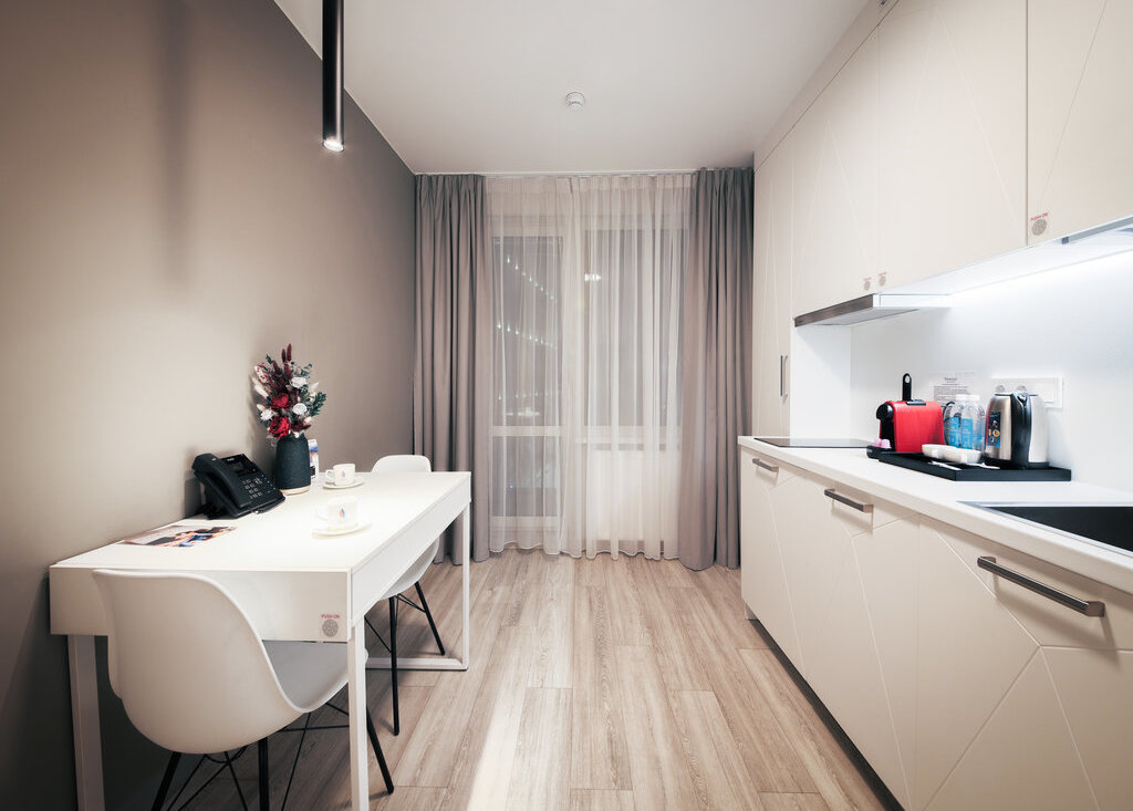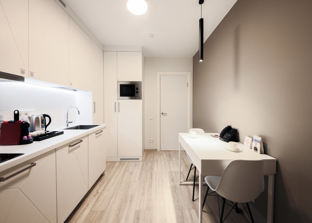 Вместительный номер с лоджией в апарт-отеле рядом с метро Бухарестская. Апартаменты полностью меблированы и оснащены всем необходимым для комфортного проживания.