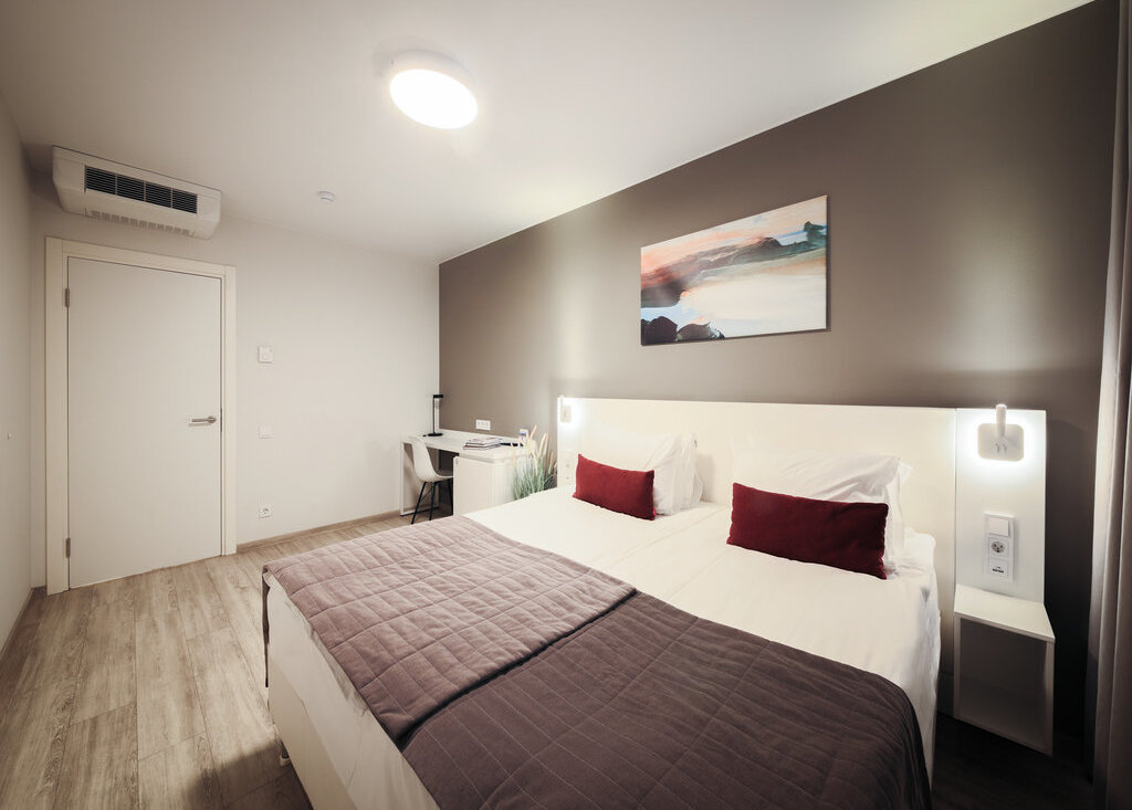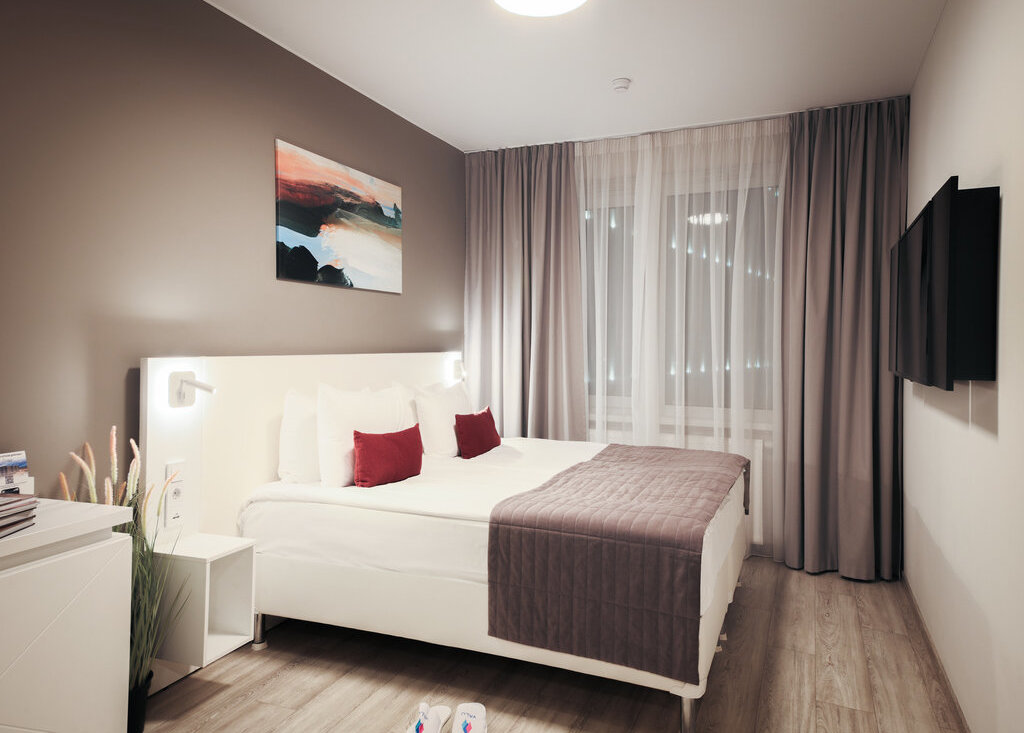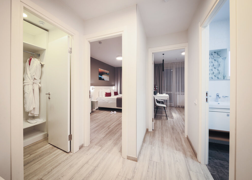 Лаконичный дизайн придает номеру легкости и визуально расширяет пространство.