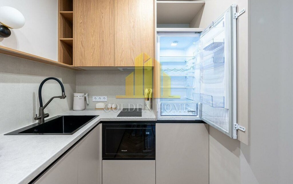 В вашем распоряжении: встроенный холодильник, встроенная СВЧ-печь, индукционная варочная панель, электрочайник, посудомоечная машина с автооткрыванием, стирально-сушильная машина, водонагреватель, телевизор со Smart TV, кондиционер и многое другое.