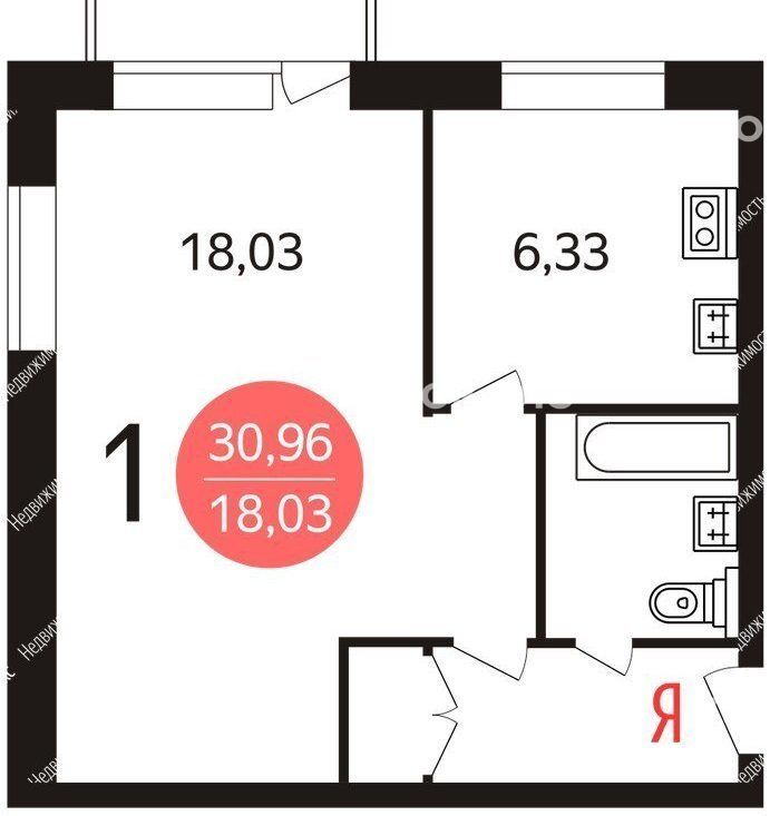 1-комнатная квартира: Санкт-Петербург, улица Софьи Ковалевской, 13к4 (30.96 м²)