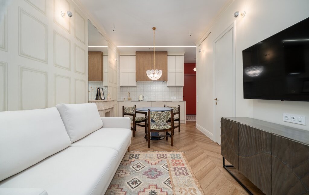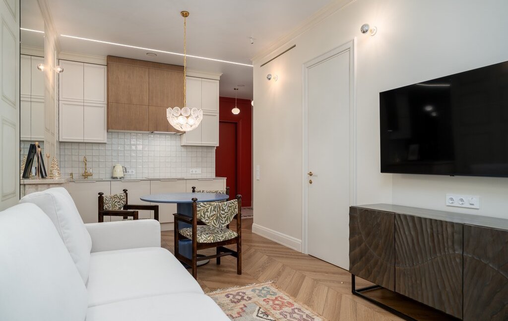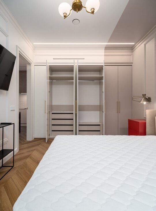 Два телевизора LG, система хранения, видео‑домофон, напольные конвекторы — в квартире очень тепло.
