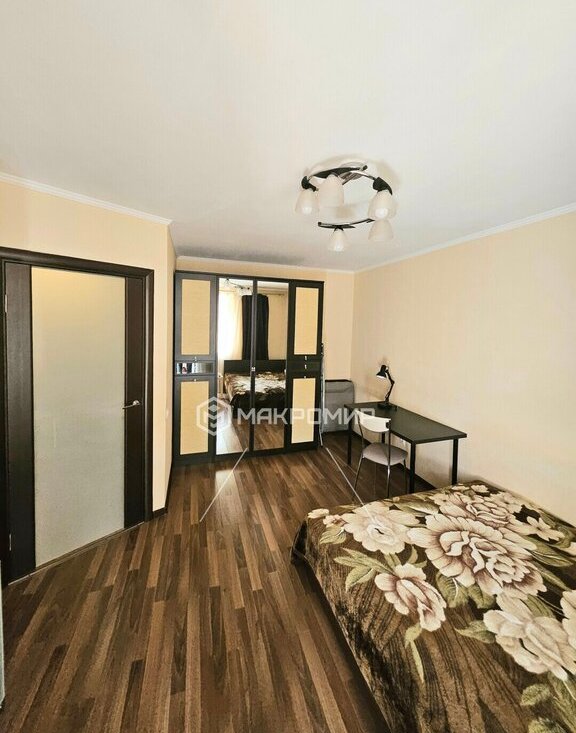 В квартире выделенное рабочее место, вместительный шкаф и новая двуспальная кровать с новым матрацем. Окна во двор на солнечную сторону, за счет этого в квартире тихо и тепло.