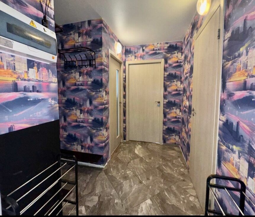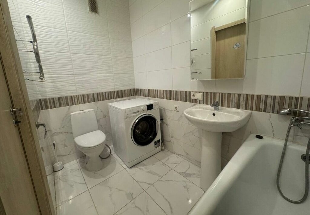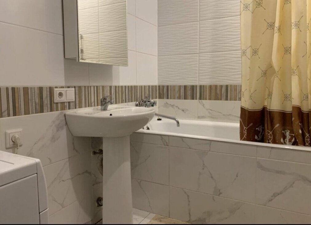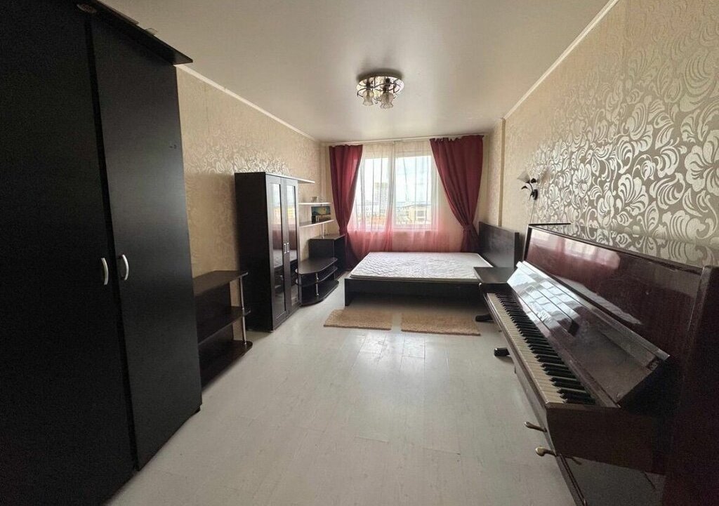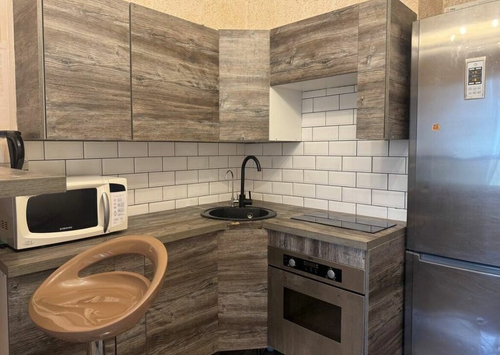 Общая площадь квартиры составляет 39 квадратных метров. Комната площадью 19 кв.м выполнена в светлых тонах и оснащена необходимой мебелью. Кухня размером 12,5 кв.м оборудована мебелью и техникой, включая холодильник, электрическую плиту и стиральную машину. В квартире также установлен телевизор. Для дополнительного пространства используется лоджия. Окна выходят во внутренний двор, что способствует тишине и спокойствию.