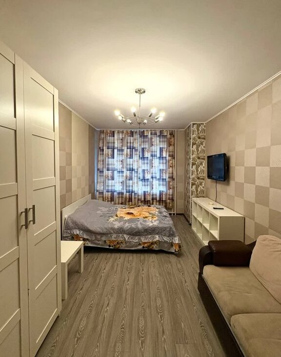 В квартире есть все необходимое для комфортного проживания. Просторная гардеробная комната с двумя шкафами обеспечит порядок и организованность. В комнате располагается удобная двухспальная кровать, вместительный шкаф и телевизор для вашего досуга. В ванной имеется стиральная машина для вашего удобства.