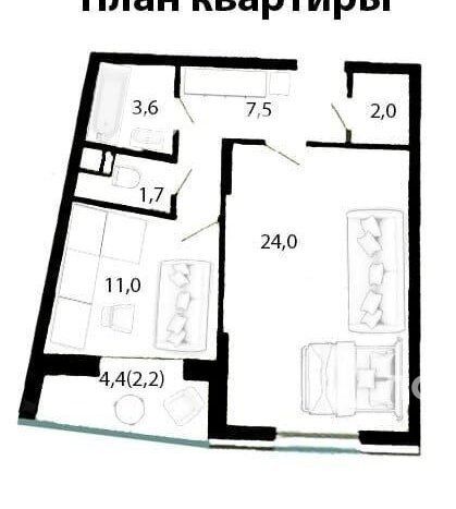1-комнатная квартира: Санкт-Петербург, Кременчугская улица, 9к2 (56.6 м²)