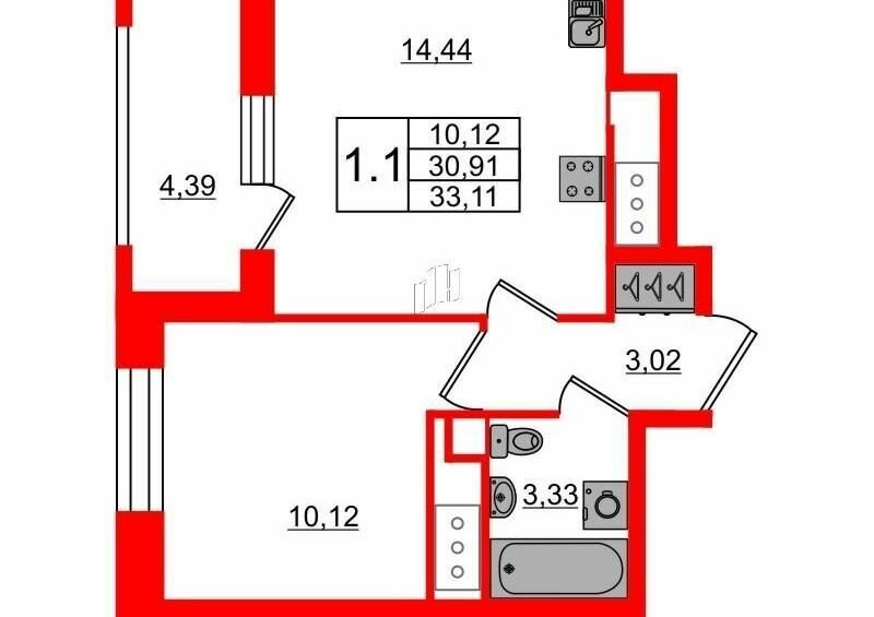 1-комнатная квартира: Санкт-Петербург, Ультрамариновая улица, 5 (33.11 м²)