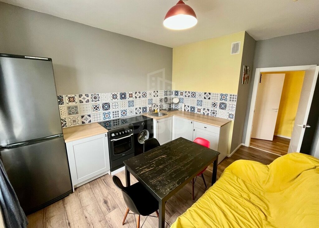 • Квартира оснащена всей необходимой техникой для комфортного проживания: холодильник, стиральная машина, микроволновая печь, духовой шкаф, чайник, фен