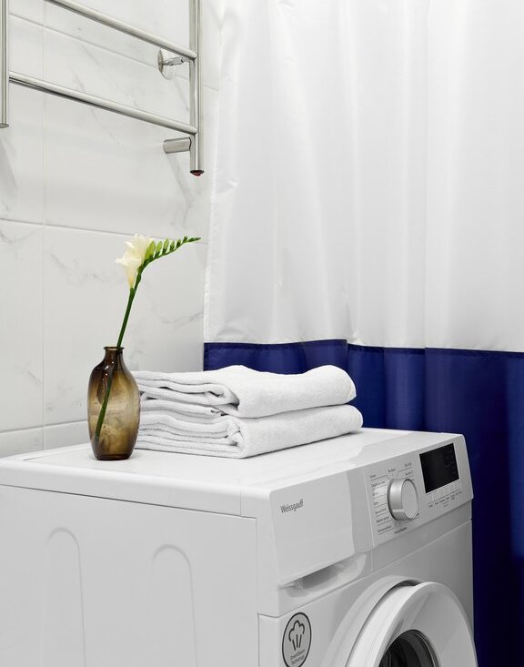 ✔️ Квартира оснащена вместительной зоной хранения, стиральной машиной, феном, есть гладильная доска, сушилка и утюг