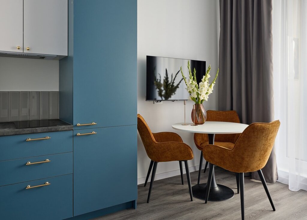 ✔️ Полностью оборудованная кухня с полным комплектом посуды, а также современной бытовой техникой, в том числе посудомоечная машина и встроенный фильтр для воды. Кондиционер.