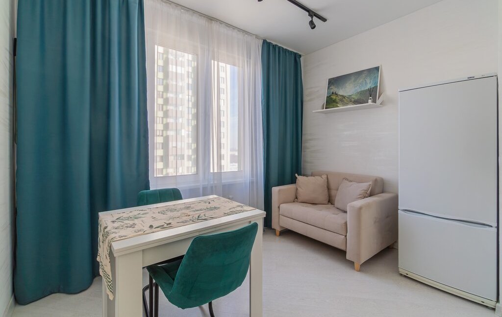 Квартира находится на 15 этаже 25-этажного дома. Общей площадью – 38,4 м2, с/у совмещенный, просторный утепленный балкон с панорамными остеклением. Окна смотрят во двор. В квартире сделан отличный евроремонт. Есть вся необходимая мебель и техника (холодильник, стиральная машина, посудомоечная машина, диван, кровать). Квартира полностью готова к заселению.