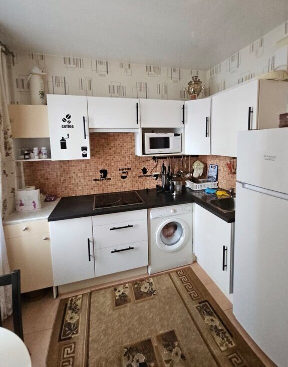 В квартире есть все необходимое для комфортной жизни. Просторная кухня площадью 9 квадратных метров оборудована современной мебелью и техникой. В гостиной установлены телевизор и удобная мебель. Ванная комната с полноценной ванной.