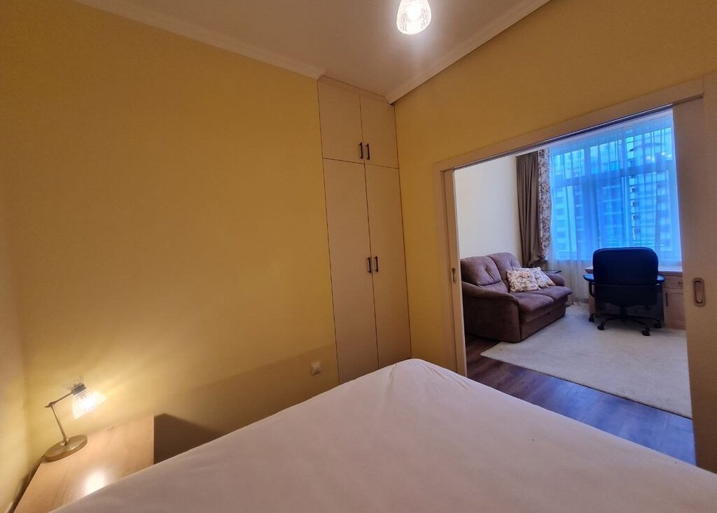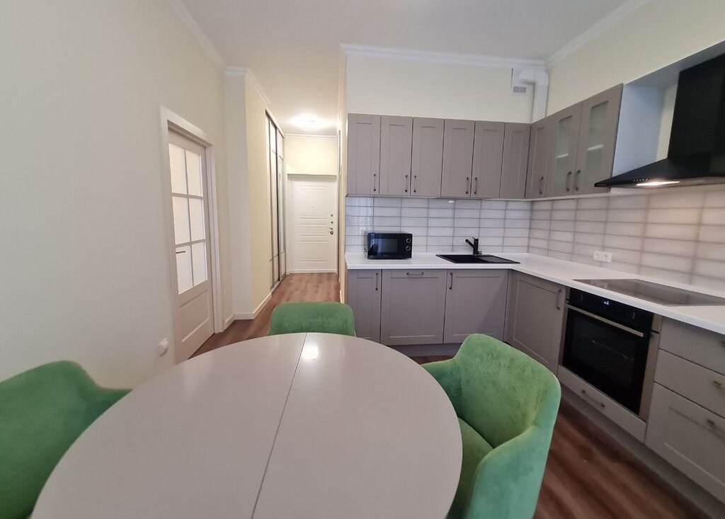 Сдаётся у метро Электросила в новом доме с закрытой территорией отличная квартира европейской планировки: высокие потолки h =3.10, просторная кухня 14 м2 с выходом на застекленную лоджию с панорамным остеклением. Комната грамотно разделена на спальню комнату и комнату кабинет. На кухне встроенная кухня с бытовой техникой - посудомоечная машинка, вытяжка и индукционная плита с духовкой, холодильник, свч, эл. чайник, фильтр очистки воды, кондиционер. Для сна и отдыха кровать с ортопедическим матрацем, прикроватные тумбы. Рабочий кабинет оборудован рабочим столом, телевизором, вместительным шкафом и раскладывающимся диваном. В прихожей встроенный шкаф, домофон с видеонаблюдением. Ванная комната просторная - полноценная ванная, установлена стиральная и сушильная машинка. В доме есть кафе и пекарни, рядом сетевые магазины. Территория закрытая, интересно оборудован внутренний двор.