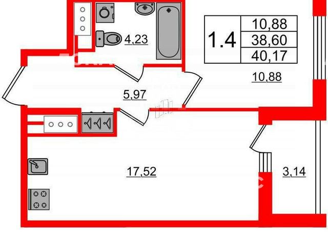 1-комнатная квартира: Санкт-Петербург, Верхне-Каменская улица, 11к1 (40.17 м²)