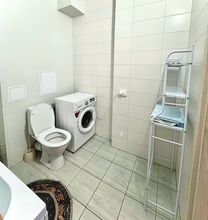 В комнате и на кухне есть вся необходимая мебель для комфортного проживания. Из техники имеется холодильник, микроволновка, духовка и стиральная машина. Просторная лоджия добавляет дополнительное пространство для хранения или отдыха.
