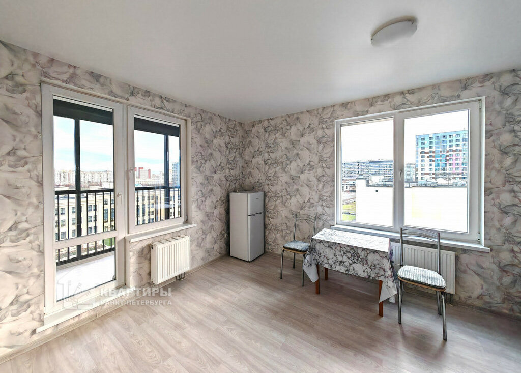 Выход на застекленную лоджию из просторной кухни-гостиной.