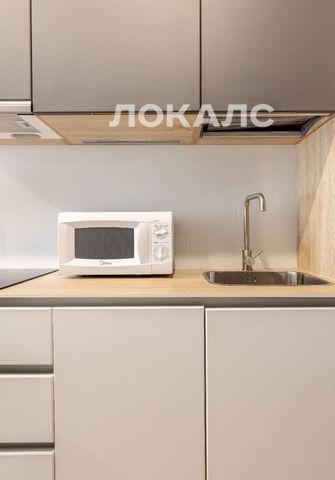 • В гостиной, совмещенной с кухней: раскладной диван 120 на 180 см, телевизор со Smart-TV, обеденный стол и стулья, кухонный гарнитур (pакoвинa, индукционная плита, посудомоечная машина, xoлодильник, микроволновая печь, электрический чайник, столовые приборы и посуда).