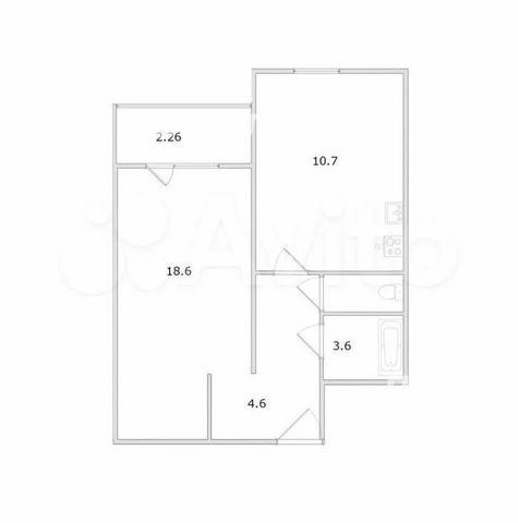 Квартира общей площадью 40,9 кв.м (площадь указана без учета площади лоджии).