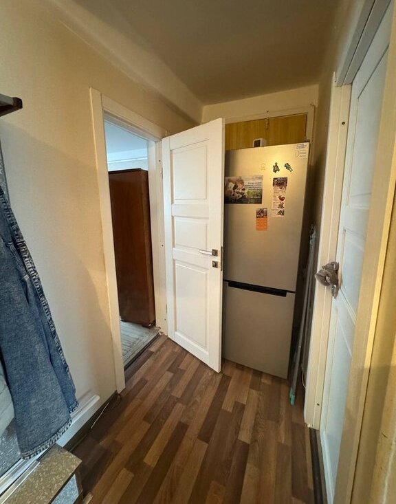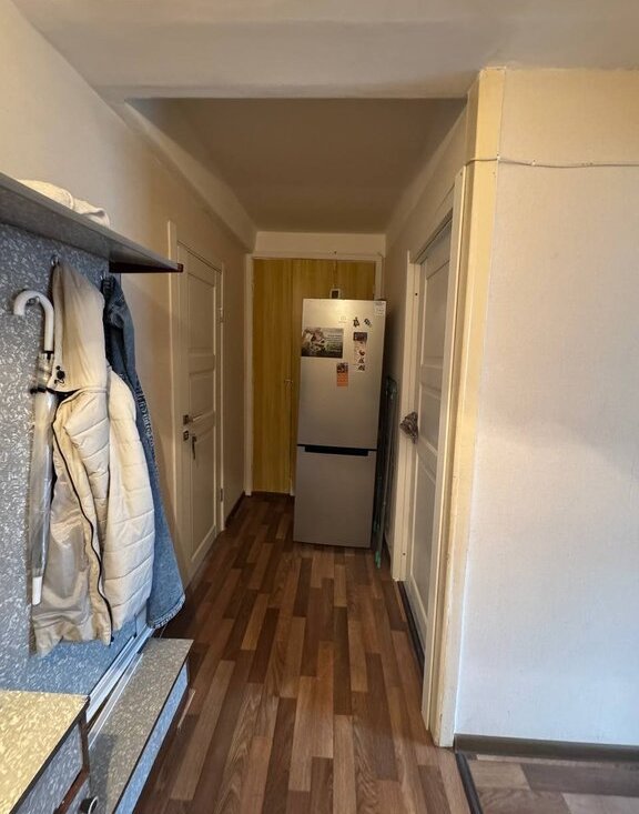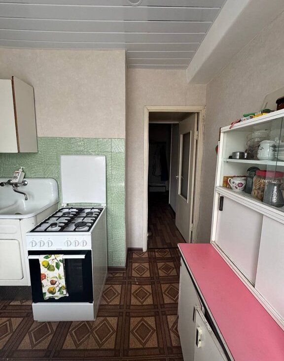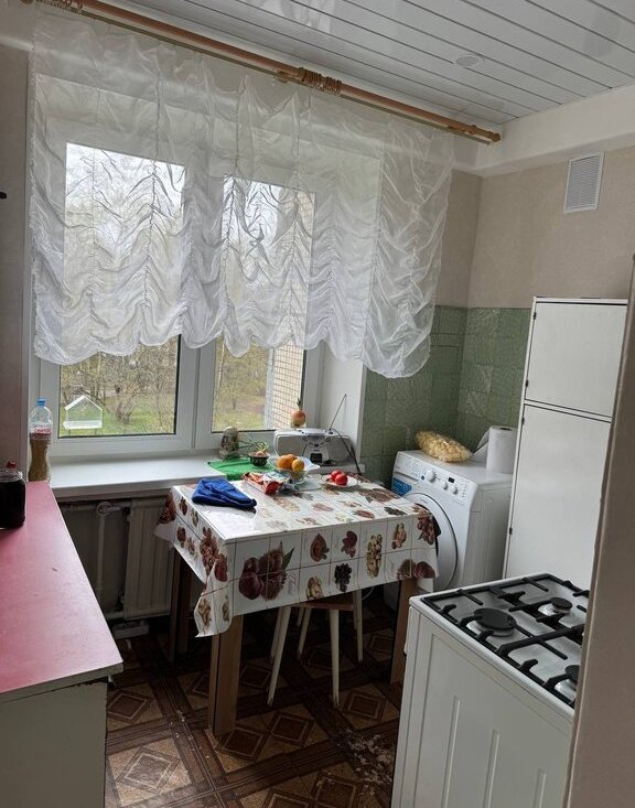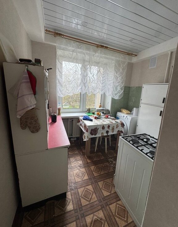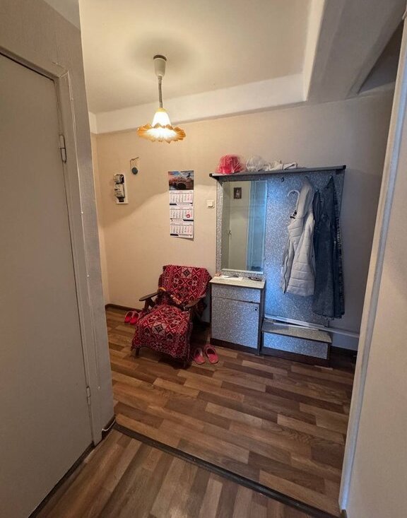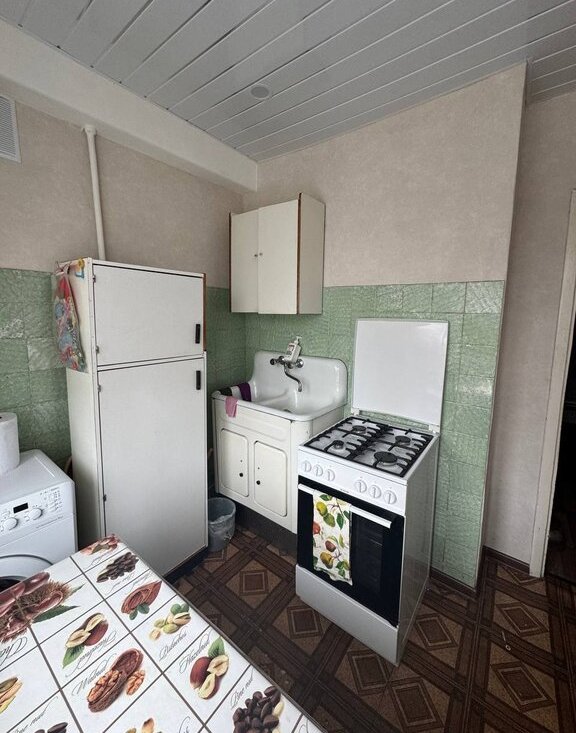Квартира в целом аккуратная и тёплая. Просторная гостиная зона, есть отдельное место для работы или отдыха. Кухня чистая, с техникой: плита, холодильник, стиральная машина — всё в рабочем состоянии. Санузел раздельный.