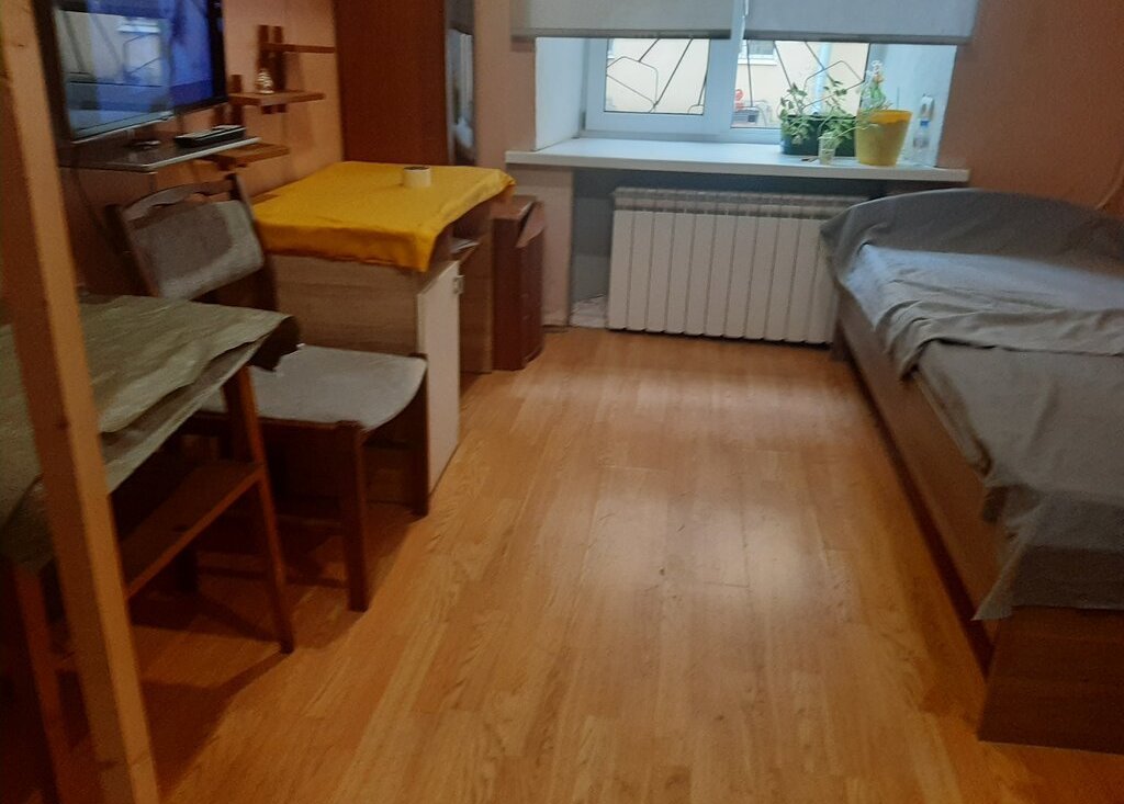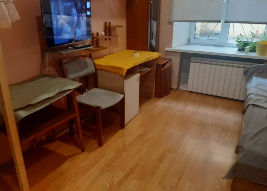 Состояние обычное.Здаеться длительно от 1 года.Кровать стол шкаф стул тв холодильник стиральная машина ванная комната.Соседнии комнаты здаються живет по одному человеку средний возраст все работают тихо уютно.Подойдет девушке парню студенты и так далее.Длительная аренда .Коммуналка плюс счетчики.как и везде летом меньше.Отличная локация .Все в пешой доступности.