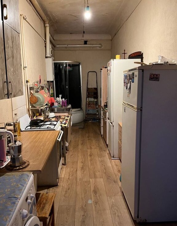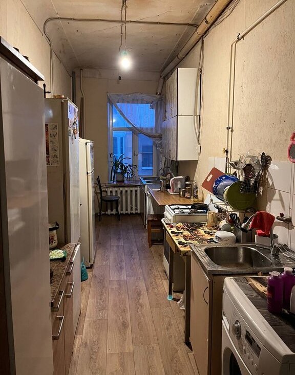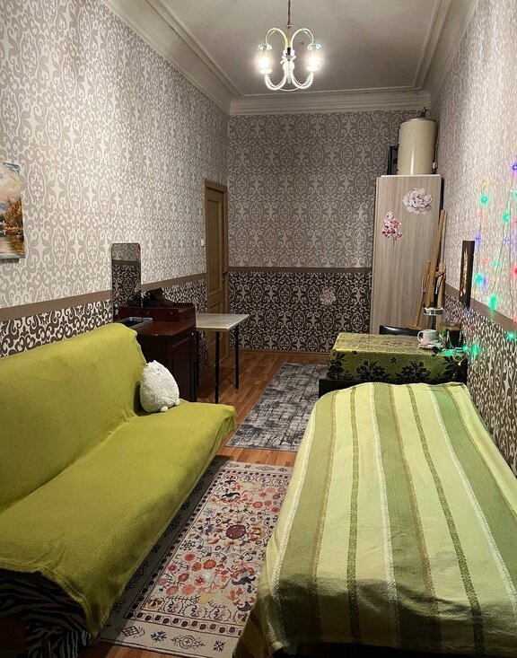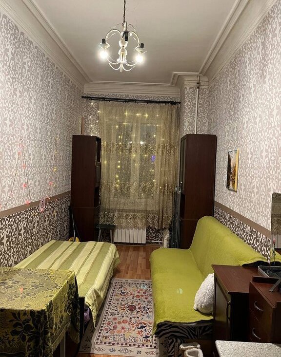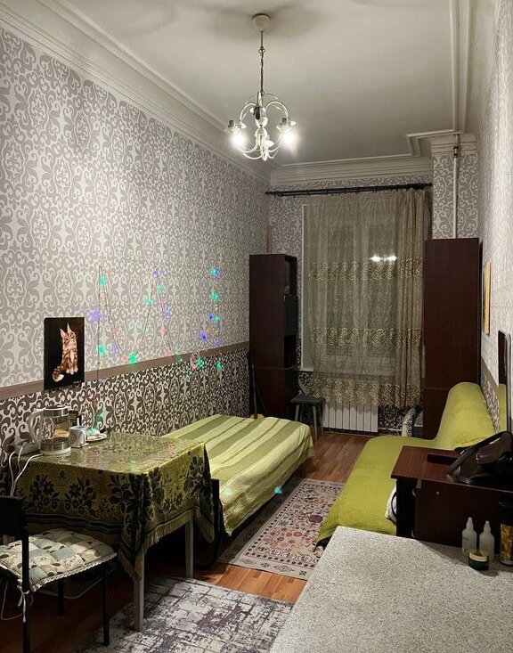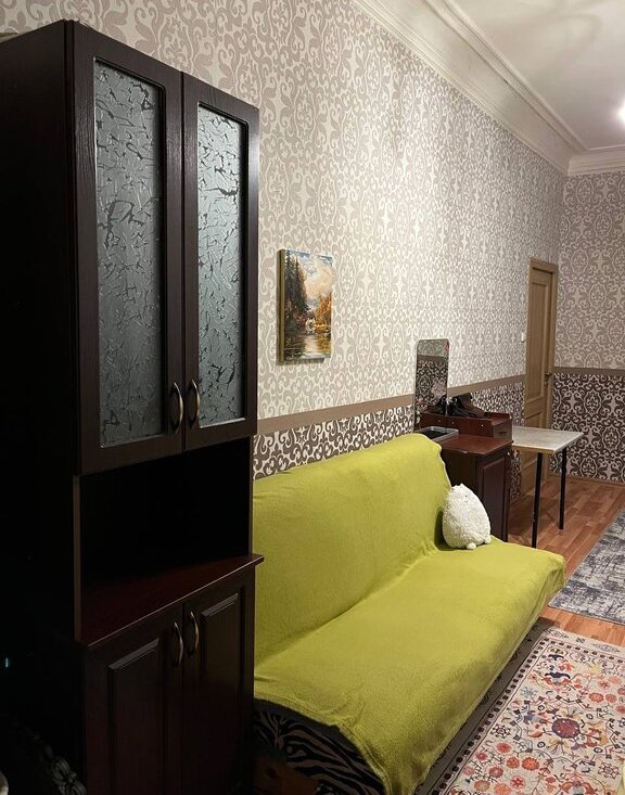 Уютная теплая комната в центре города. Для девушки, можно с котом. Душ на кухне. В одной комнате живет семья, в другой не живут. Вход со двора. 5 этаж без лифта! Освободиться с 1 февраля!