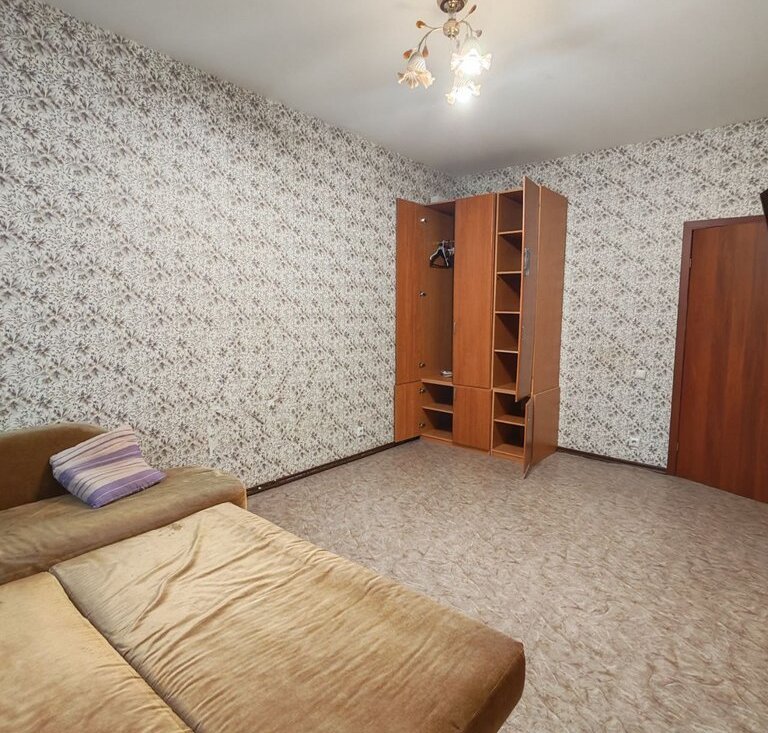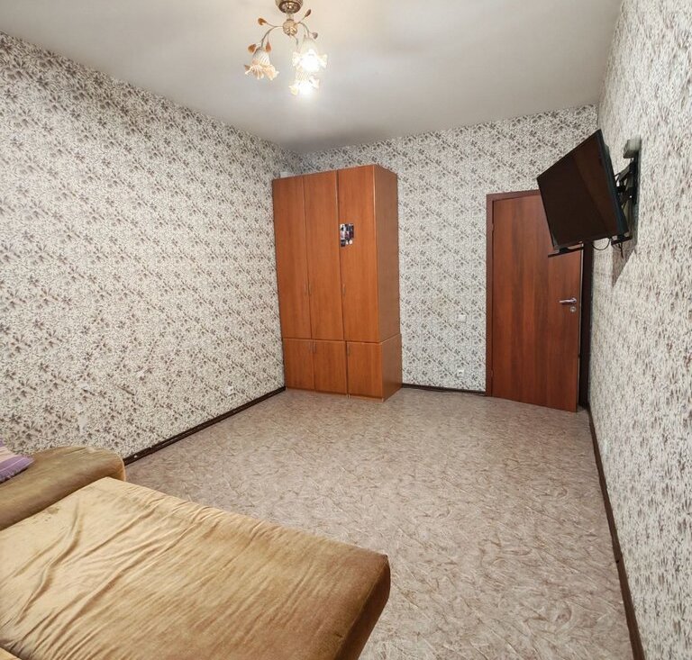 В комнате уже есть всё для комфортной жизни: диван, шкаф, телевизор.