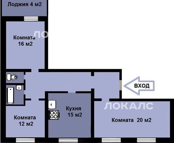 1к в 3-комнатной квартире (20 м²)
